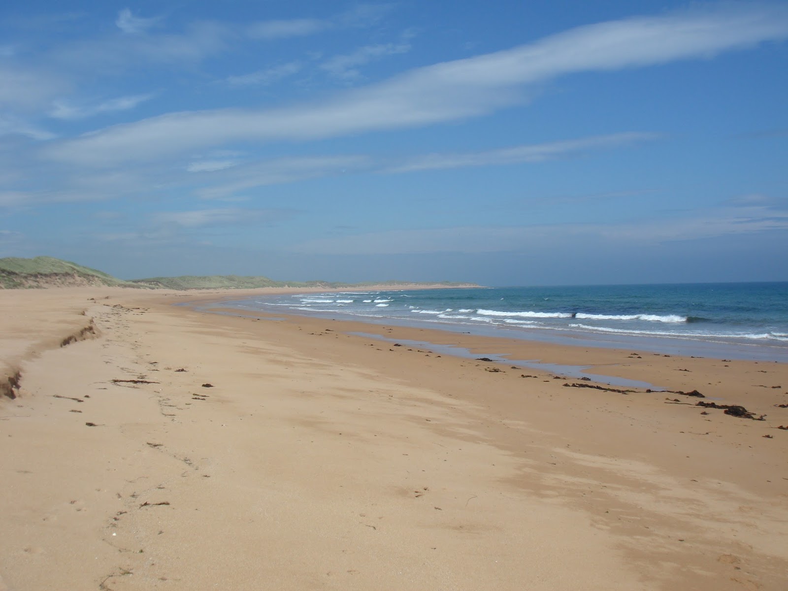 Mile after mile of beach, I was in heaven!!! I passed by Rattray Head with its distinctive lighthouse plonked in the middle of the sea and then the Gas Terminal and finally arriving in Peterhead via a very useful foot bridge across a river that links GC No13 with Peterhead.